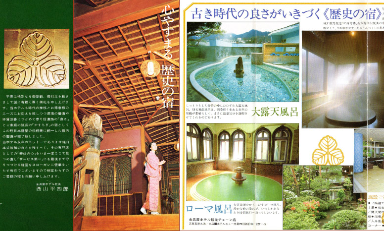 はじまりは昭和24年12月に施行された「政府登録国際旅館制度」。今後の国際的な観光に向けて外国からの旅行者が不便にならないように一定の基準をもったホテル・旅館を登録するという制度でした。内容を見ると『国が日本旅館のホテル化を推奨した』、と言ってもいいかもしれません。この時に金具屋は屋号を金具屋ホテルとし法人化、客室の入口に鍵がつき、部屋番号をふったのです。