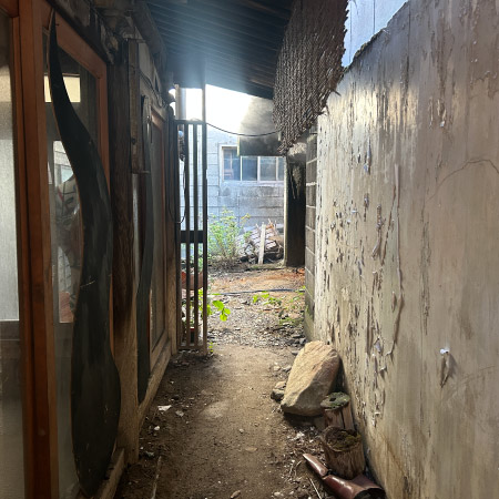 金具屋第三ボーリングは川沿いの元旅館「臨仙閣」の敷地内にあります。外からは見ることはできません。掘削深度は100mほど。道路下のパイプで金具屋に流れていきます。