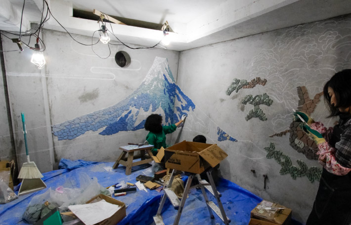 タイルアートは全て手作業。3か月あまりをかけて完成したお風呂です