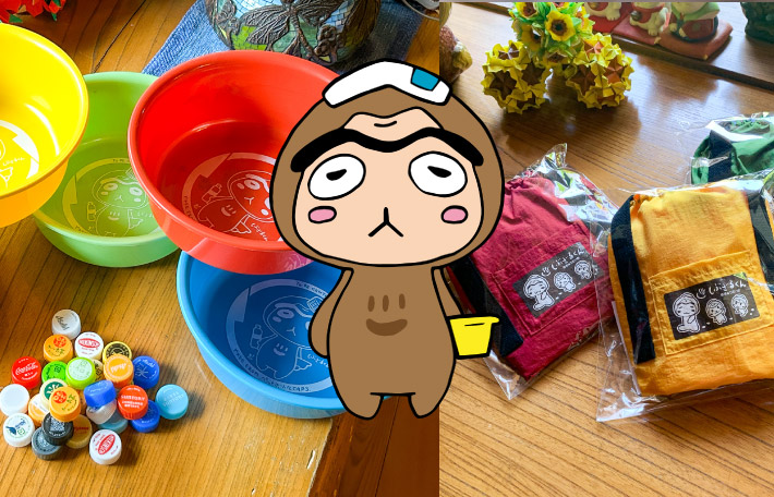 また、現在、渋温泉ではしぶざるくんグッズも多数販売しております。海外の方に大人気のしぶざるくんを模したミニだるま、うちわや、お風呂グッズではペットボトルキャップをリサイクルしたオケ、温泉感あふれるタオル、湯巡りに便利なおふろバッグ、お風呂にうかべるソフビのフィギュアもあります。金具屋や渋温泉の売店、道の駅やまのうちでも販売しておりますので、ぜひお越しの際はご覧ください。