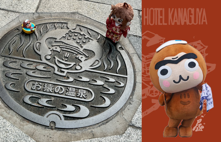 もともと渋温泉では地獄谷野猿公苑とセットで『お猿のおんせん渋温泉』というキャッチコピーの元、お猿のキャラクターをつくっていました。渋温泉のマンホールを見てもらうと…そう、彼が初代のキャラクター。