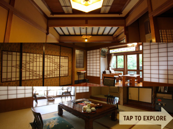 金具屋は昔の建物をそのまま残しております。その為、館内には階段や段差が多数あり、車椅子は使用できません。