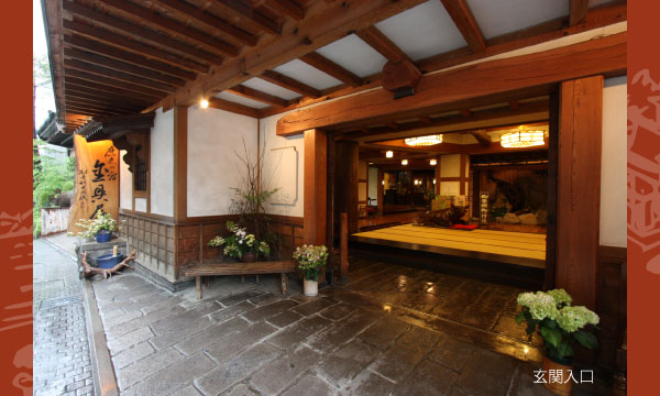 食事処のひとつ、金具屋大広間は昭和11年に完成、昭和25年に改築をした本間130畳(総面積200畳)の木造会館。4階建ての斉月楼と同様に、国の登録有形文化財に認定されています。